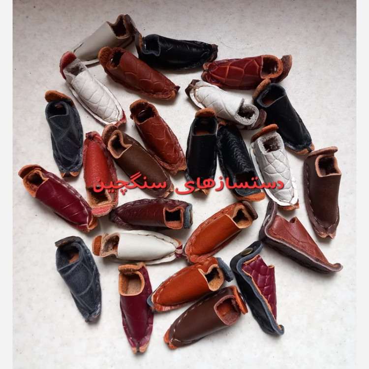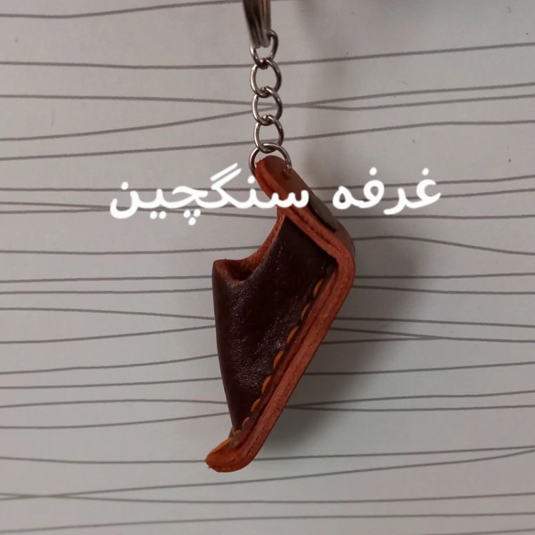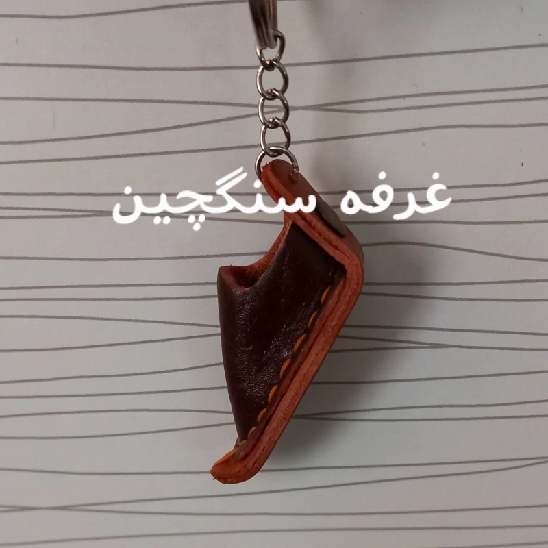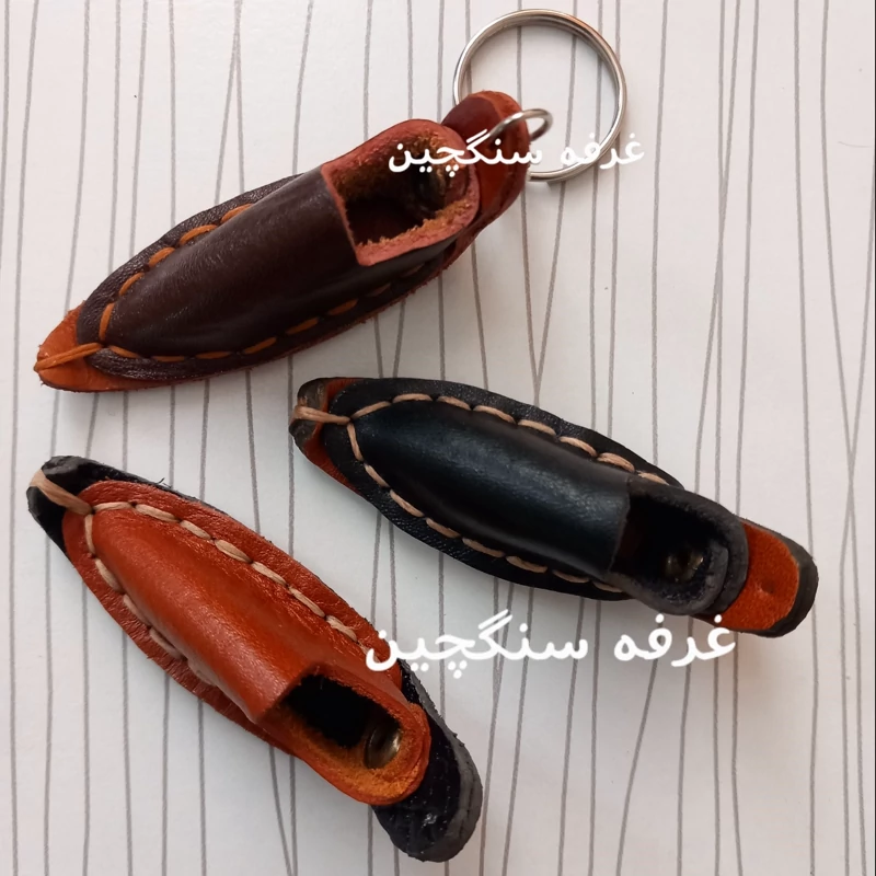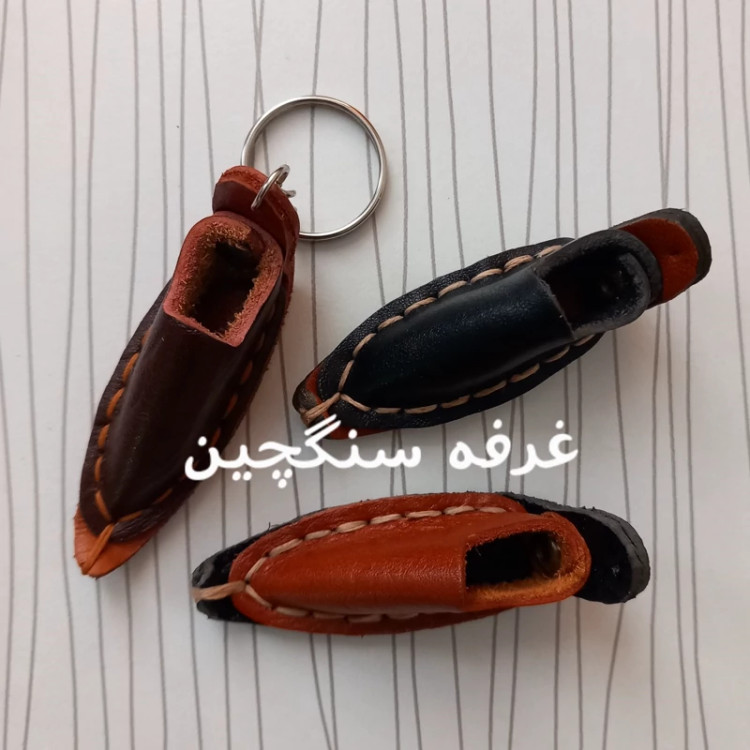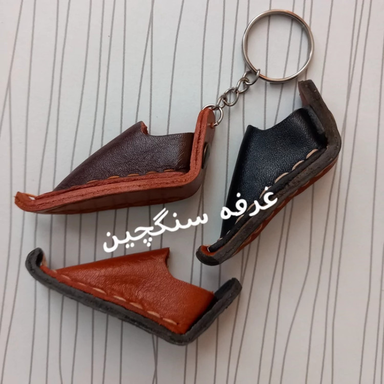 جاکلیدی چرم طبیعی طرح گیوه دست دوز و باارزش در رنگهای عسلی، مشکی ، قهوه ای، زرشکی و ... طول با حلقه 12 سانتیمتر و عرض حدود 2.5 سانتیمتر چرمها ممکن است ساده یا طرحدار باشند