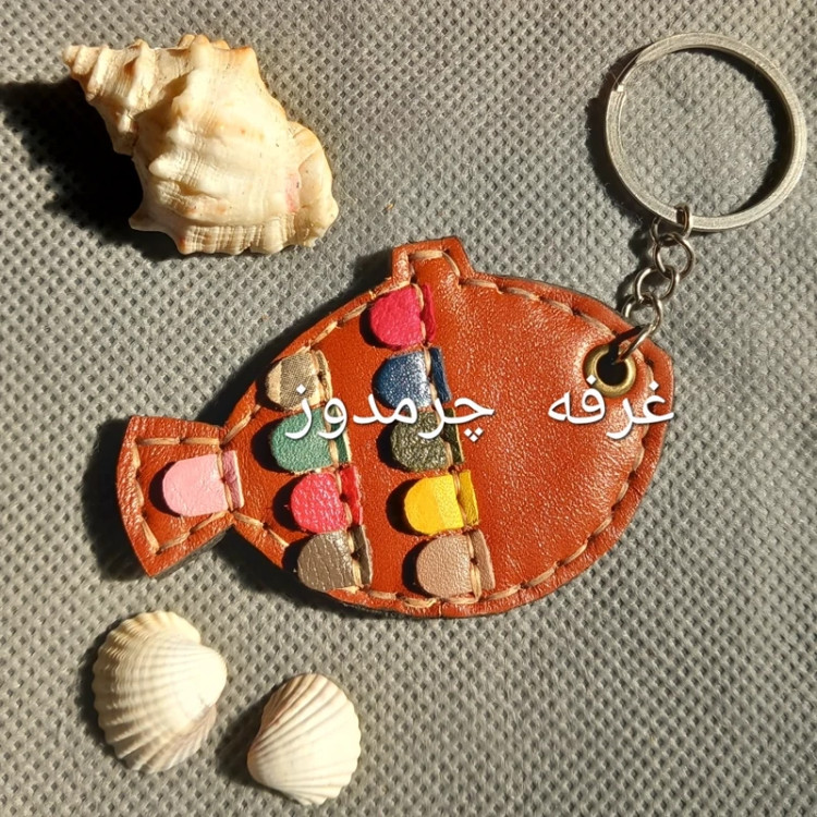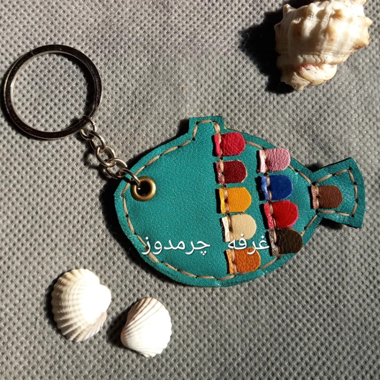 ماهی رنگی چرم طبیعی دست دوز **این محصول خلاقانه، ابتکار خاص غرفه چرمدوز است** ماهی رنگی چرم طبیعی دست دوز، دو طرف فلس و دوخت خورده، تمام دست دوز، بسیار خاص و زیبا. دور کار رنگ و پرداخت شده لطفا بعد از سفارش، در قسمت نظرات ، رنگ انتخابی زمینه ی ماهی رو اعلام بفرمائید. رنگهای موجود برای بدنه ماهی عبارتند از قهوه ای روشن، سرمه ای، سبز روشن ، مشکی، قهوه ای تیره، طوسی ******این طرح کاملا ابتکاری و مربوط به غرفه چرمدوز است.