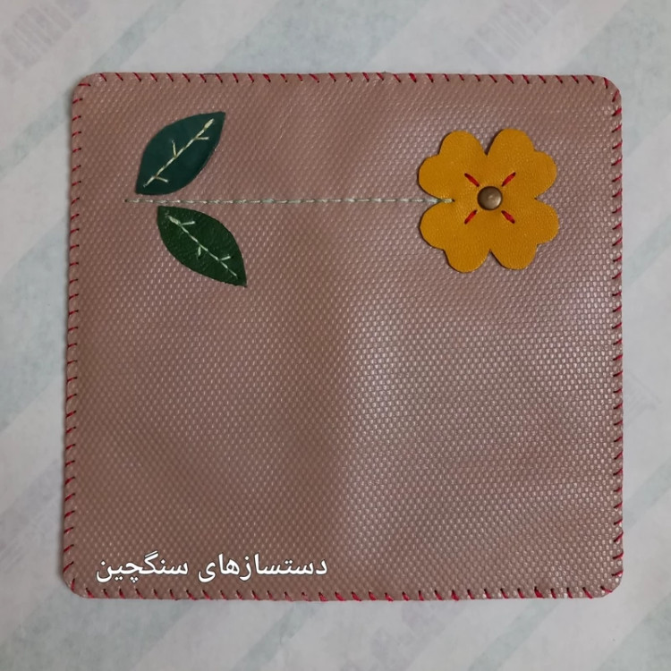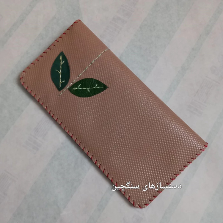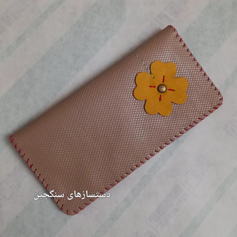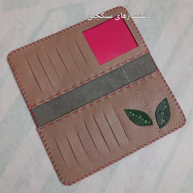 کیف پول چرم طبیعی گاو دست دوز صورتی کم رنگ یا پوست پیازی طرح خاص، جدید و ذوقی! بسیار سبک و کم وزن از چرم طبیعی گاو با کیفیت عالی و بصورت کاملا دستی تهیه شده ۲ جیب بزرگ برای اسکناس یا گوشی تا ۶ و نیم اینچ دارد ۱۲ جای کارت مجزا و یک جای عکس دارد با نخ ابریشمی و تمیز و بادقت دوخته شده مناسب هدیه و مناسب استفاده خانمها و دختران و علاقه مندان به صنایع دستی
