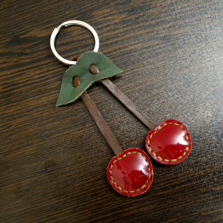 جاکلیدی و آویز کیف چرم طبیعی طرح گیلاس **این محصول خلاقانه، ابتکار خاص غرفه چرمدوز است** تماما چرم طبیعی و کاملا دست دوز است. چسبی نیست و کاملا دوخت خورده به نحوی که به مرور زمان تغییر شکل نمیدهد. به منظور زیباتر شدن گیلاس ، از چرم ورنی طبیعی استفاده شده که دقیقا شبیه به رنگ گیلاس باشد. این طرح زیبا با محاسبه حلقه جاکلیدی، 12 و نیم سانت طول و 6 سانتیمتر عرض دارد.