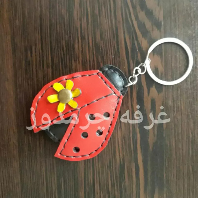 **محصول اختصاصی و ابتکاری غرفه چرمدوز** جاکلیدی چرم طبیعی کفشدوزک و گل کاملا دست دوز روی بال کفشدوزک یک گل بصورت برجسته قرار دارد. کاملا دوخت خورده و محکم است و به دلیل کیفیت چرم طبیعی و استحکام دوخت، تغییر شکل نمیدهد. برشها و دوختهای این محصول بدون استفاده از دستگاه و کاملا دستی انجام شده و بر ارزش کار بعنوان یکی از صنایع دستی می افزاید. چرم بکار رفته در آن ترکیبی از چرم طبیعی گاو و بز و علاوه بر ماندگاری بسیار، به راحتی قابل شست و شو است. بدنه کفشدوزک حالت برجسته دارد.