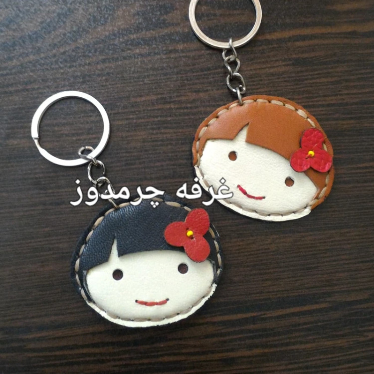 جاکلیدی چرم طبیعی گاو دخترک جاکلیدی چرم دست دوز