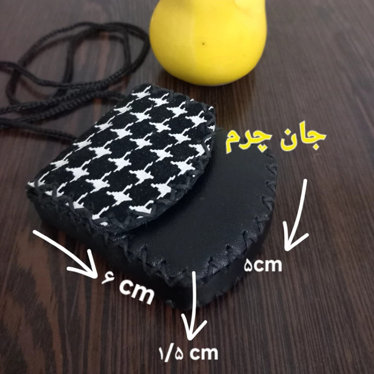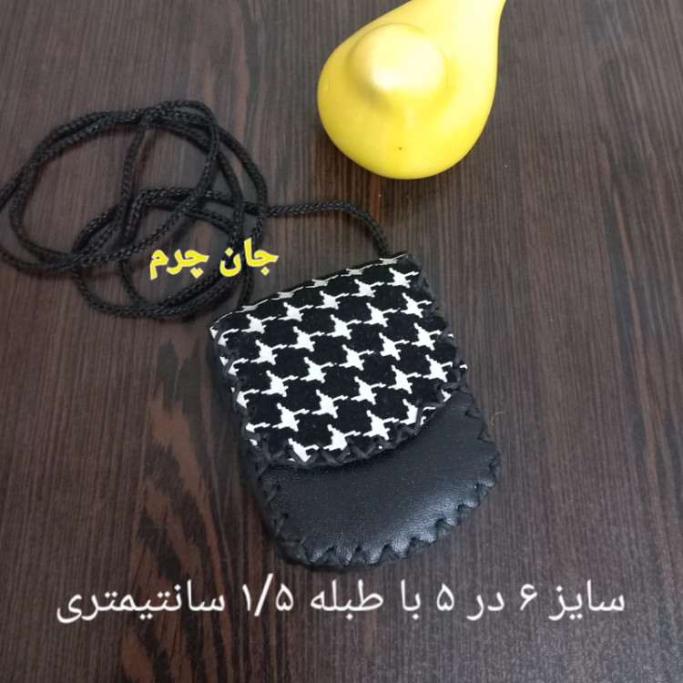 کیف گردنی دعا جنس چرم طبیعی گاو رنگ ترکیبی مطابق با تصویر: مشکی / سیاه و سفید پیچازی طراحی به شکل کیف برای تدارک جای مناسب ویژه نگهداری ادعیه و آیات قرآن طول کیف از لبه تا وسط انحنای پایین، 6 سانتیمتر ، عرض 5 و طبله یک و نیم سانتیمتر است. بند بسیار محکم و مقاوم قابل سفارش در رنگ موجود در آگهی