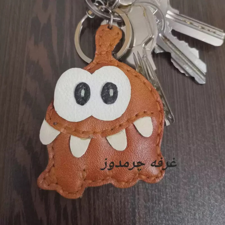 جاکلیدی و آویز کیف چرم طبیعی دست دوز شخصیت کارتونی محبوب اوم نوم ** طرح خلاقانه غرفه چرمدوز ** طرح این جاکلیدی از روی انیمیشن و بازی آن کشیده و روی چرم پیاده شده است این محصول برش و دوخت کاملا دستی دارد. طول جاکلیدی با محاسبه حلقه و زنجیر ۱۳ سانتیمتر و عرض آن در پهن ترین قسمتها ۶ سانتیمتر است. اگرچه اومنوم در بازی و انیمیشنش ، به رنگ سبز ظاهر شده اما این محصول در رنگهای زرد، عسلی ، قرمز و فیروزه ای هم قابل سفارش است.